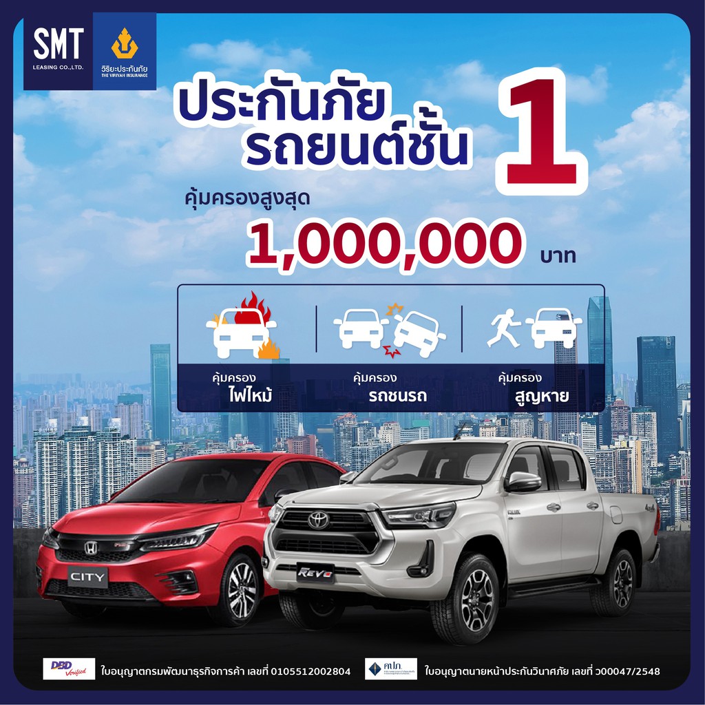 ประกันรถยนต์ จากวิริยะประกันภัย คุ้มครองครอบคลุมทุกกรณี ตั้งแต่อุบัติเหตุรถชน สูญหาย ไฟไหม้ น้ำท่วม รวมไปถึงค่ารักษา.